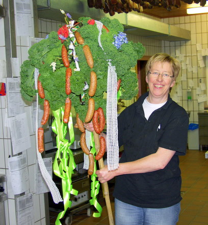 Zu einem leckeren Grünkohlessen hatte die Fleischer-Innung Vechta eingeladen. Der gemütliche Abend wir immer sehr ausgiebig gefeiert. Wie es beim Grünkohlessen üblich ist, wird nach dem Essen ein Kohlkönig und eine Kohlkönigin nominiert. Das „grüne Monarchenpaar“ wird mit einer Amtskette und einem Grünkohlorden für ein Jahr in den Dienst gehoben. Das Zepter wurde bei uns in der Küche gebunden, mit viel Grünkohl vom Land, Kohlpinkel, Mettwurst, Kümmerling und anderen Dekorartikel wird er Besen zu einem Zepter gebunden.