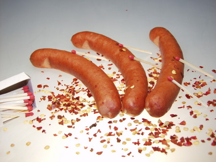 Foto: Ob die Streichhölzer an der Wurst entzündet werden können?