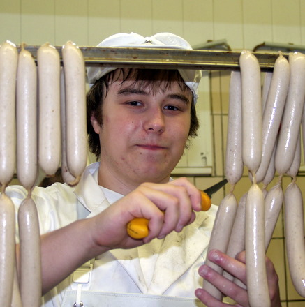 So geht es Steffen Runge. Er beginnt heute seine Ausbildung als Fleischer bei uns. Herzlich willkommen Steffen! Seine Eltern Ulla und Claas Runge haben auch eine Fleischerei in Sulingen. Darum kennt Steffen schon viele Sachen. Wir freuen uns auf eine gemeinsame Zeit, damit mit Du viel lernst und eine perfekte Ausbildung schaffst. Da Computer und Internet zu Deinen Interessen gehört, wird es bestimmt nicht langweilig beim Freese werden. Pass immer schön auf deine Finger auf und probieren musst Du alles bei uns!