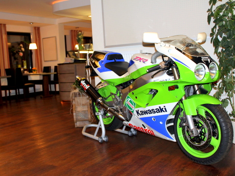 So einen Frühlingsgruß haben wir als Leihgabe in unserem Restaurant „ESSIDEEN“ stehen. Unser Gemüselieferant Norbert Krämer ist leidenschaftlicher Motorradsammler (hat über 20 Raritäten). In einem kurzen Gespräch hat er sich spontan bereit erklärt, uns dieses Exemplar als Frühlingsbotschafter ins Lokal zu stellen. Für die Freaks: Es ist eine Kawasaki ZXR750R aus dem März 1992 mit einer Motorleistung von 140 PS. Von der Maschine soll es weltweit nur 1000 Stück geben (in Deutschland 400 Maschinen). Das Renngerät ist top gepflegt und besitzt viele technische Feinheiten.