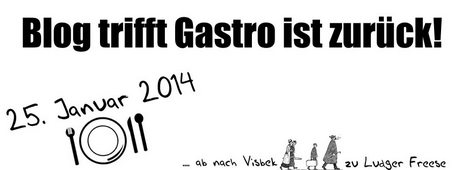 „Blog trifft Gastro“ heißt die Veranstaltung die vom 24. bis 26. Jan 2014 stattfindet. Einmal im Jahr (letztes Jahr ausgefallen) treffen sich namhafte Blogger in einem Gastrobetrieb. Thomas Lippert vom Winzerblog hatte die Idee dazu So waren die letzten Veranstaltungen in Mannheim, Berlin, Barnberg und Wolfsburg…und jetzt in Visbek.